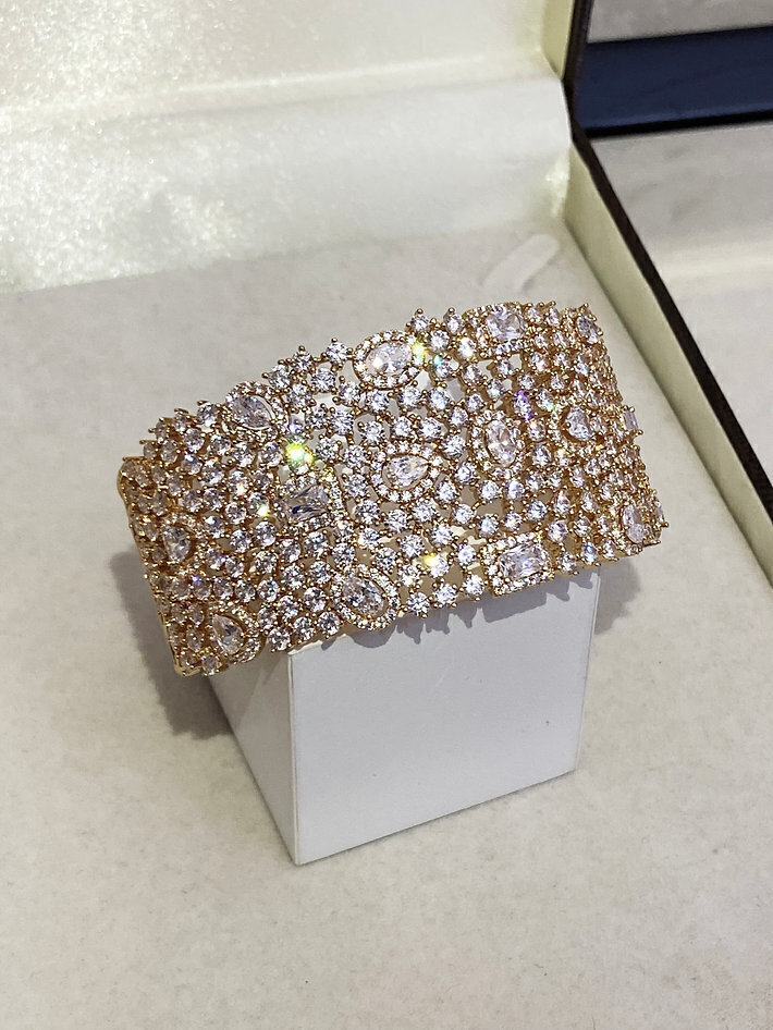 Apresentamos este lindíssimo bracelete banhado em banho triplo de ouro, cuidadosamente adornado com zircônias cravadas que proporcionam um brilho único e sofisticado. Uma joia luxuosa e encantadora, perfeita para diversas ocasiões, que se destaca pelo seu design elegante e acabamento impecável.