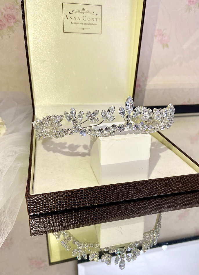 Realce sua elegância com a delicadeza única da Coroa de Noiva Anna I!