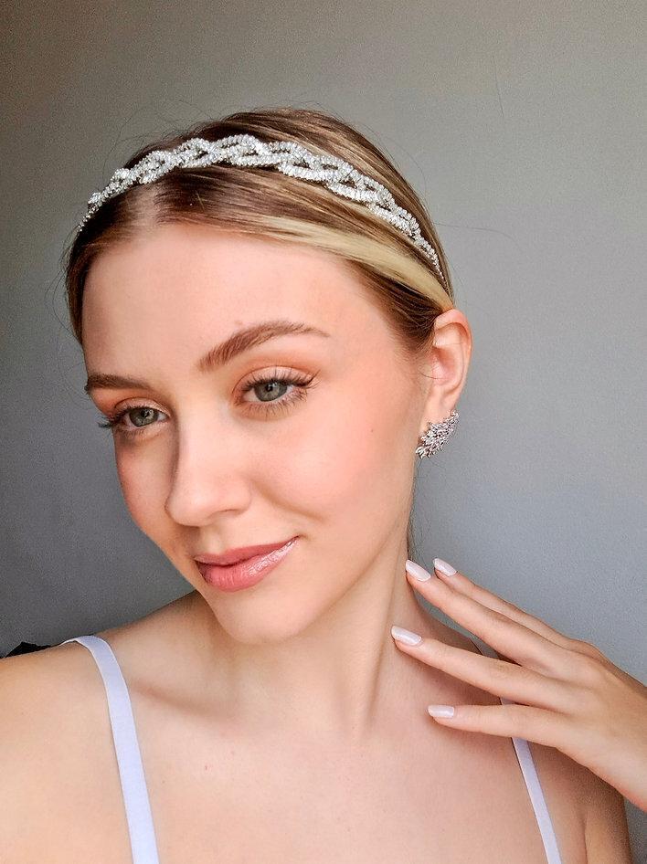 Características principais: - Banho triplo de ródio para maior durabilidade e brilho intenso - Mini zircônias retangulares cravejadas, oferecendo um acabamento sofisticado - Largura de 2 cm, ideal para um destaque elegante no penteado - Flexível e ajustável, adapta-se facilmente a diferentes estilos de cabelo